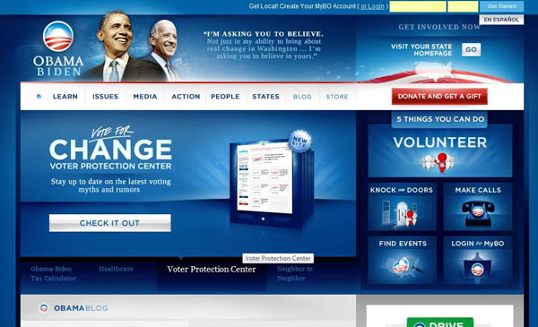 MyBarackObama.com, though scarcely more interesting or entertaining than McCainSpace, does at least feel more comfortable in its own skin. The style and typography is cohesive, it’s easy to navigate, and it seamlessly fits into Obama’s larger site (McCainSpace is actually good on this count too).