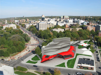 The activity diagram in Figure 10 was then placed on the existing site and scaled to align with a proposed set of circulation pathways and activity nodes. The lines of these pathways were then used as profile lines to generate the building’s form (Figures 12 and 13).