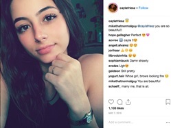 | As Alice Marwick observes of “Instafame,” i.e. the achievement of microcelebrity through Instagram, it can be difficult to assess the causal roots of an individual account’s popularity. In the case of one account that Marwick tracks, Cayla Friesz, then a high school student from Indiana, her Instafame seemed to center around nothing more than her embodiment of all-American youthful, white cis-gendered femininity (Figure 3). |