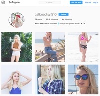 | Galloway’s pessimistic solution is to decline participation altogether, but this advice seems insufficient seeing as the fulfillment of raced and gendered ideals need not even rely on embodied acts but is increasingly achievable through simulation or what Galloway might define as a “purely idealized racial coding.”xix This new reality was recently exhibited through marketing firm, Mediakix, and its experimental monetization of a simulated Instagram personality, Alexa Rae as calibeachgirl1310 (Figure 5). |